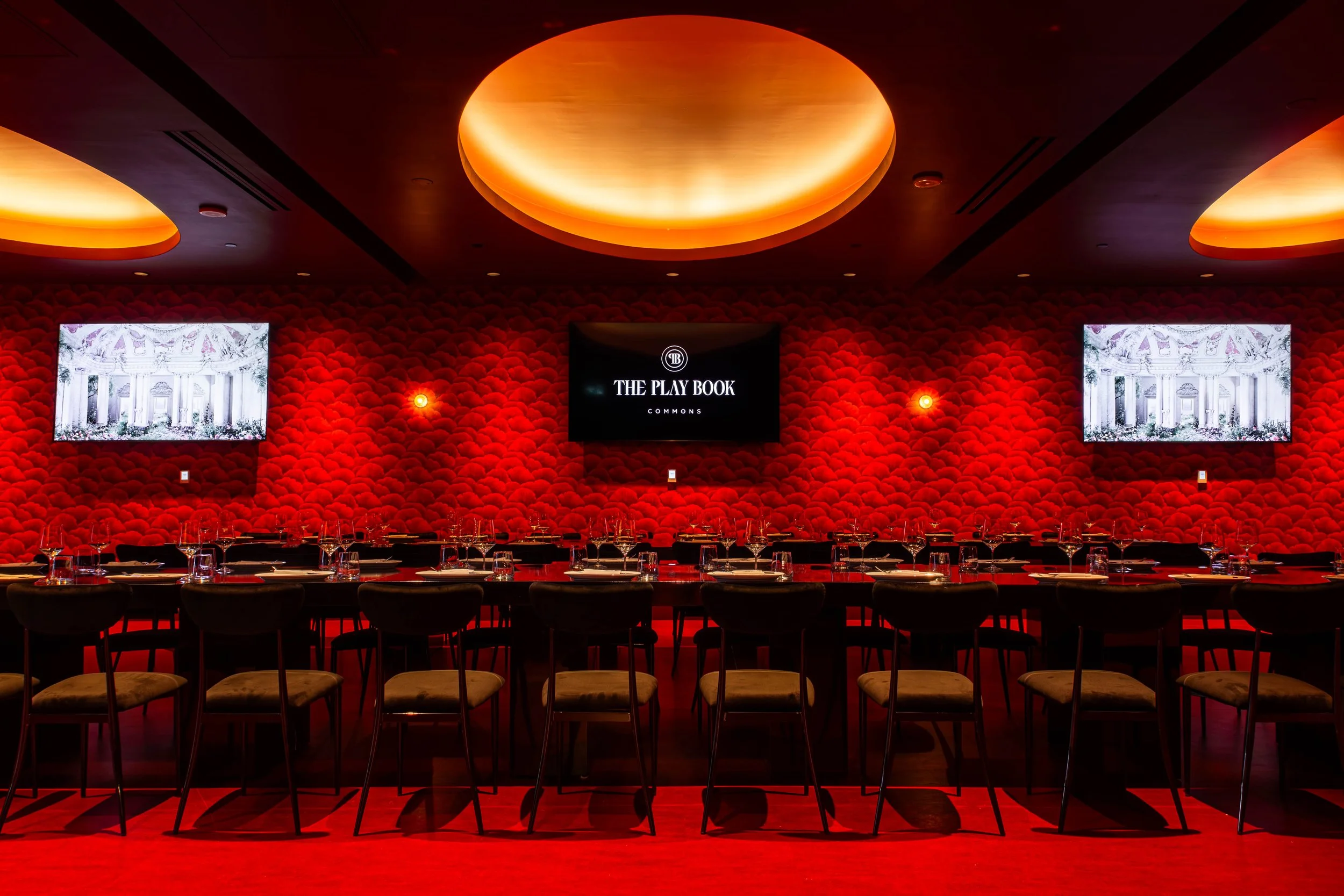 Step into The Playbook Commons - where polished aesthetic of a modern steakhouse blends with the laid-back comfort of American Italian hospitality. The Playbook Commons offers a dynamic and memorable setting for any private and semi-private event with the excitement of an immersive sports theatre. Our venue is designed to elevate every gathering, from a corporate outing to pre-wedding festivities, or a game-day party, guests will enjoy elevated cuisine in a space that balances sophistication with playful charm.